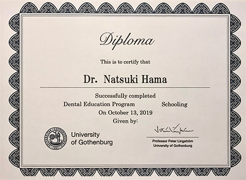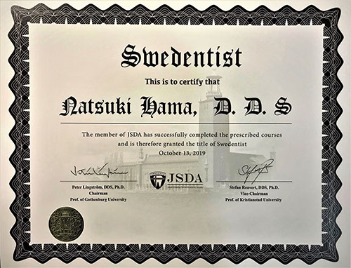 | 2019年(令和1年) | スウェーデン・イエテボリ大学カリソルブ・ペリソルブ認定医 |