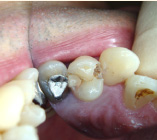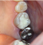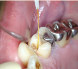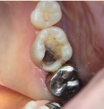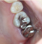 下の写真の一番左は実は治療前の写真です。痛みもなく一見問題なく入っている銀歯も除去してみると中に虫歯が。殺菌作用のある薬を詰めて治療中です。外からは分かりずらい虫歯も多いので定期検診がおすすめです。